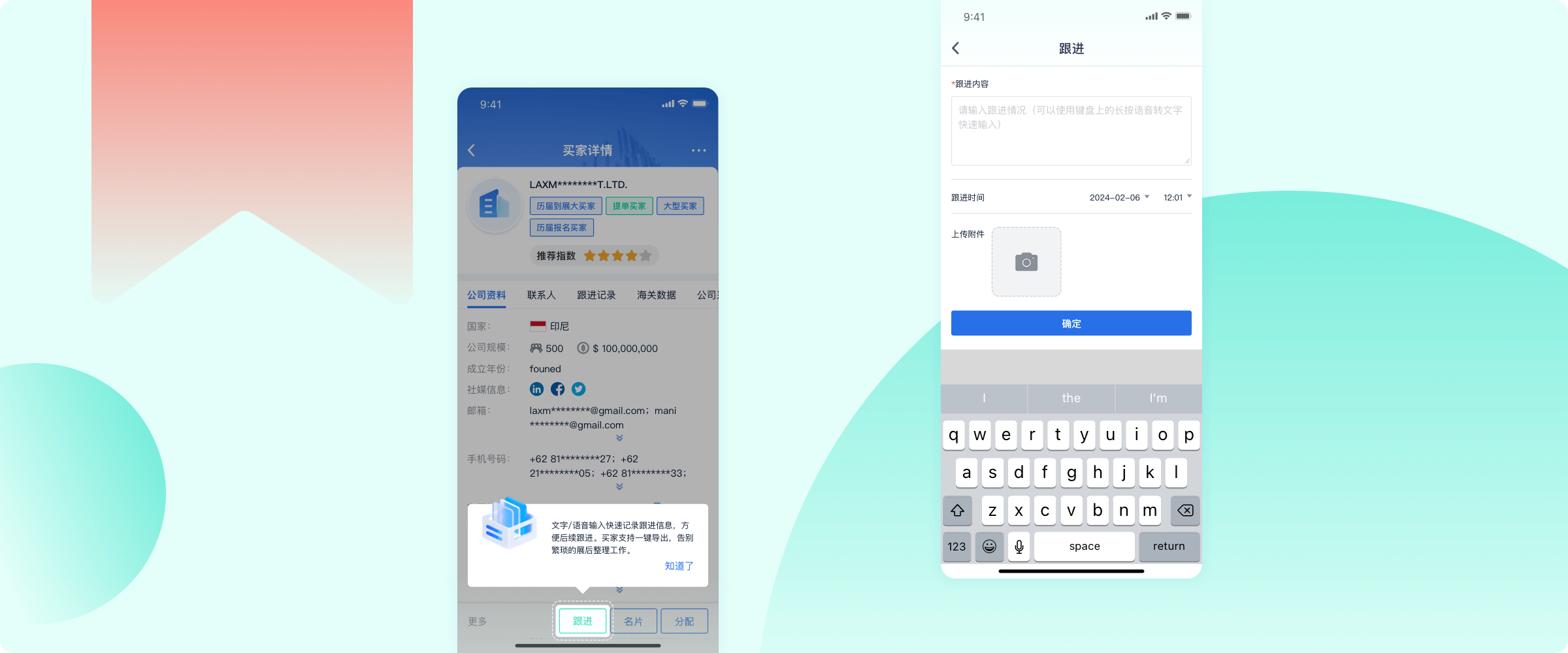 扫码识别自动建档、线索跟进、买家名片识别,高效管理客户