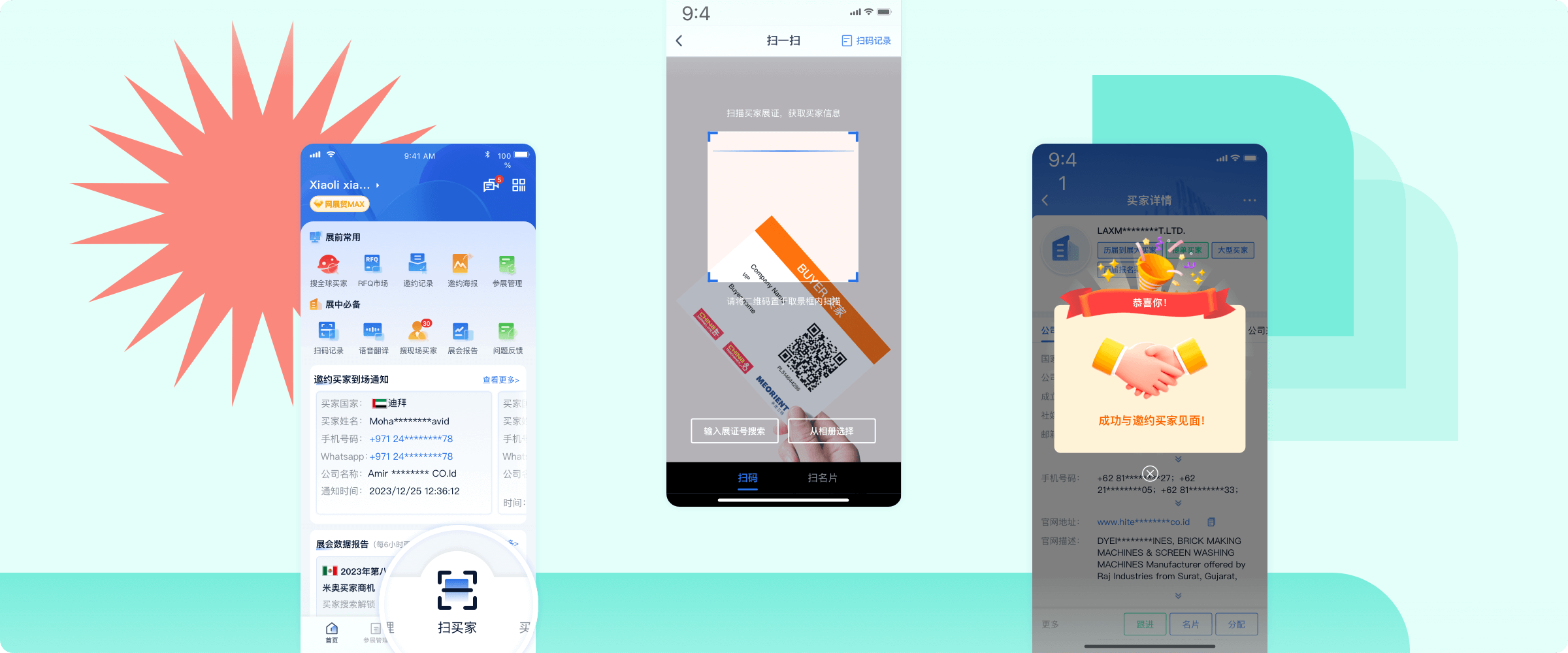 扫一扫买家的展证二维码,轻松便捷留存客户信息,轻松识别邀约买家。